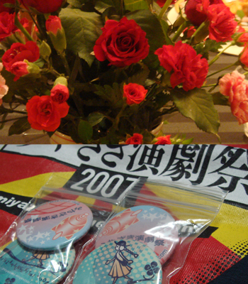 引き出物に今年もお手伝いデザインした演劇祭のカンバッジの出来上がり品が